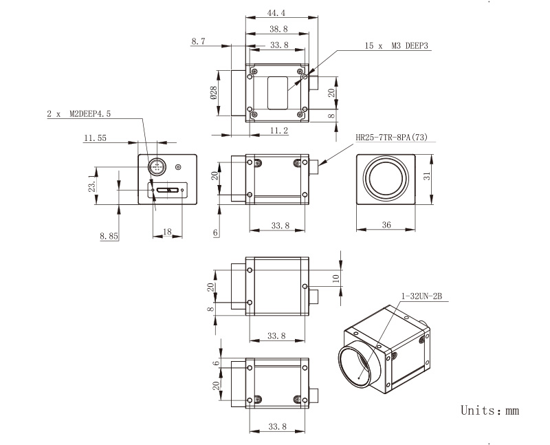| 机械尺寸 | 36(W) × 31(H) × 38.8(L) mm(不含镜头接口和连接件) | |