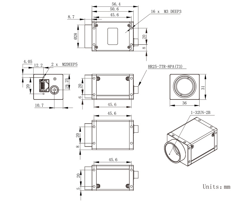 | 机械尺寸 | 36(W) × 31(H) × 50.6(L) mm(不含镜头接口和连接件) |