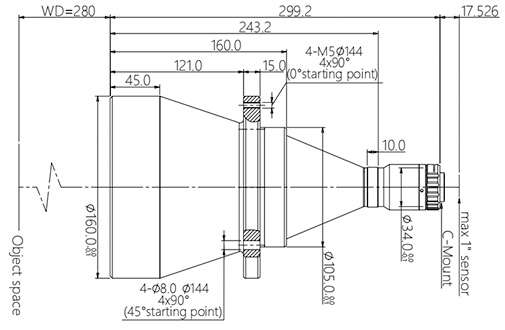 | 物方工作距 WD(mm) | 280±5 |