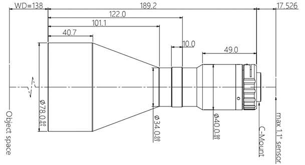 | 物方工作距 WD(mm) | 138±3 |