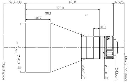 | 物方工作距 WD(mm) | 138±3 |