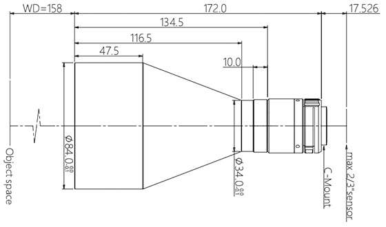 | 物方工作距 WD(mm) | 158±3 |