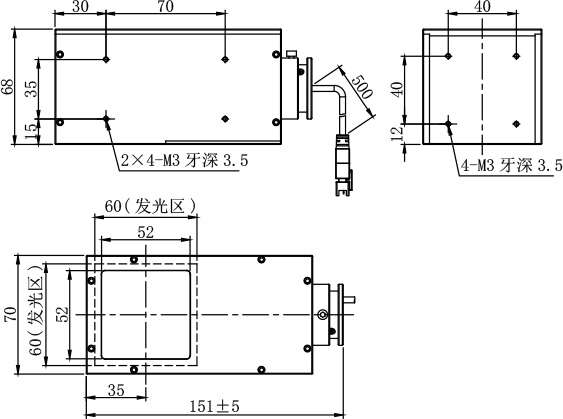 从与相机同轴方向照射平行度高的平行光。可作为背光使用,相比远心平行光源,成本低,体积小。