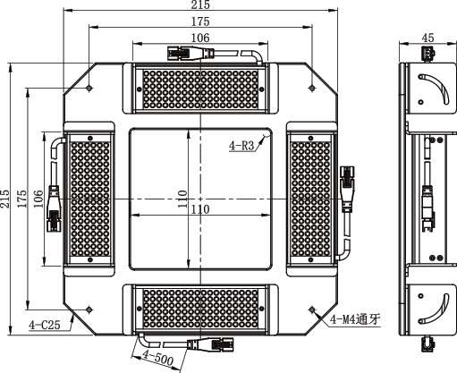 四边组合条形光,可独立控制角度、亮度。安装简单,使用方便。
