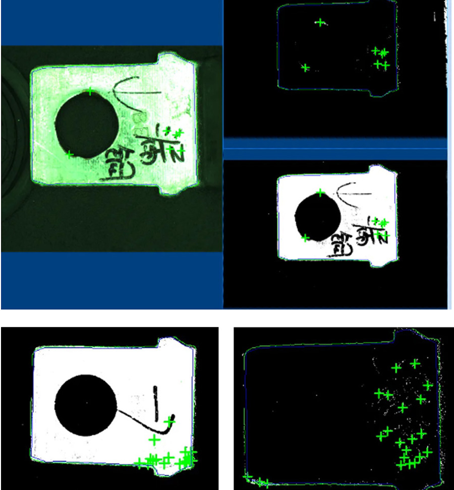 针对零件变形、银点数量异常等问题,方案提供双重判断逻辑:变形检测可通过宽窄数值分析或基准边距离测量实现,银点数量检测则通过设定区域宽窄阈值进行判定。搭配黑白高分辨率相机与背光源,系统能清晰捕捉零件轮廓特征,无论是细微变形还是多银点、少银点的情况,都能快速识别,完美满足生产线高速检测需求。