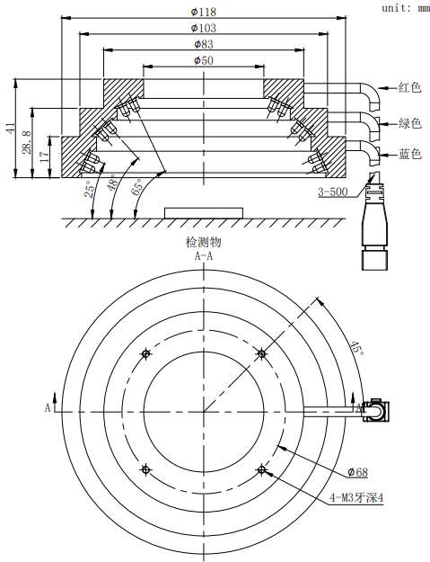 多色多角度照明,能准确反映物体表面坡度信息,AOI专用、多用于环状类缺陷检测。