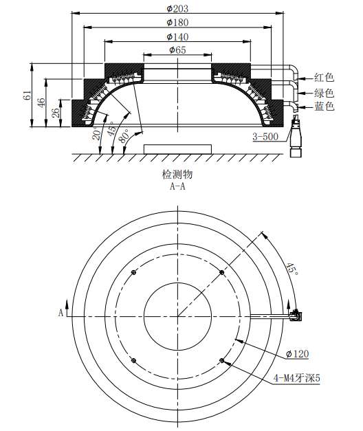 多色多角度照明,能准确反映物体表面坡度信息,AOI专用、多用于环状类缺陷检测。
