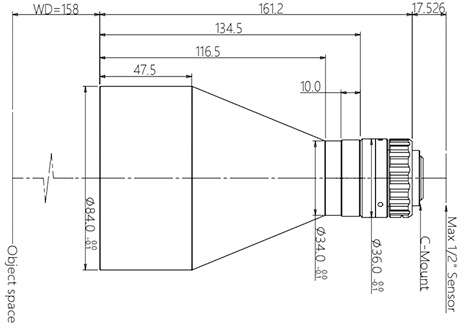 物方工作距 WD(mm) 158±3