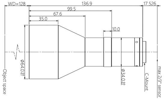 | 物方工作距 WD(mm) | 128±3 |